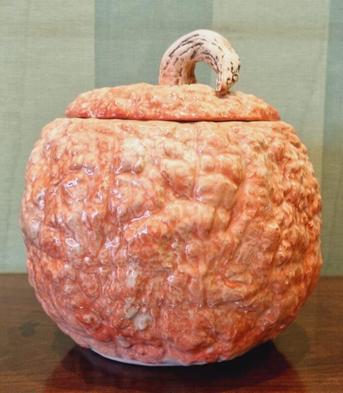 Glazed pottery pumpkin storage container